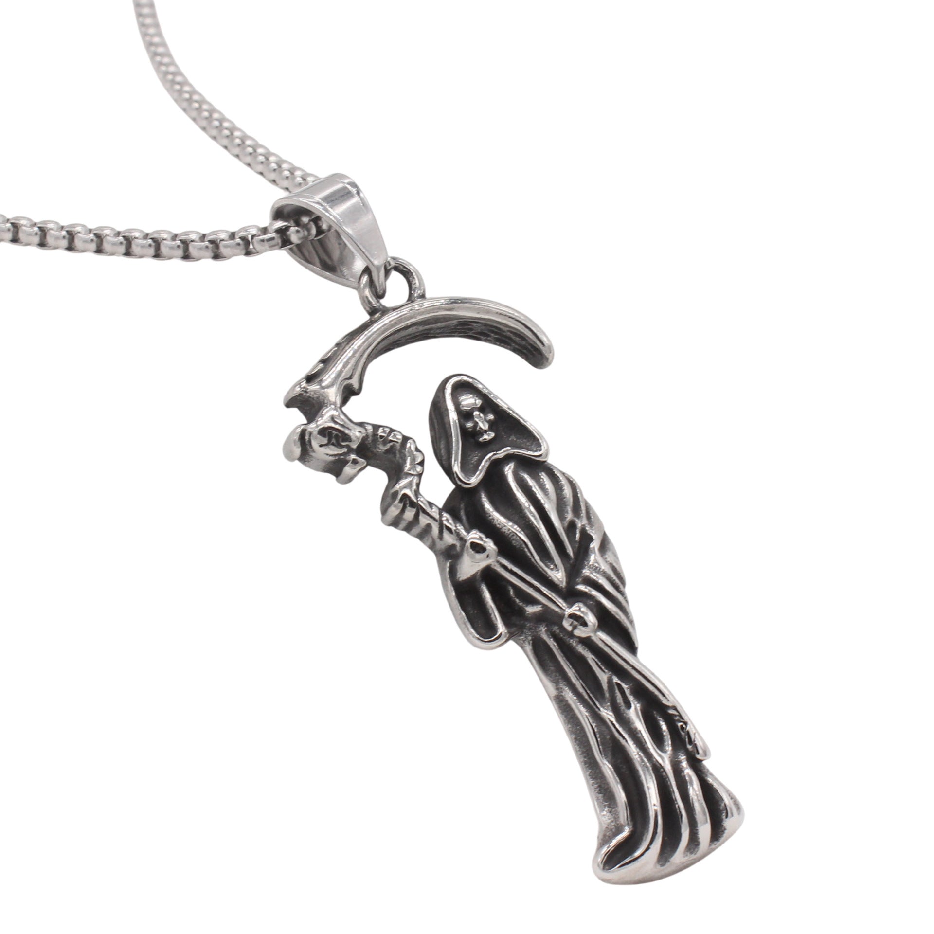 From Planderful Jewelry, where fearless style meets refined craftsmanship, this pendant is built for everyday moments that demand a bold statement. The European and American personality retro Death skull sickle motif speaks to confident men who wear their story as part of their style. Carry a piece that looks iconic and timeless, wherever life takes you.