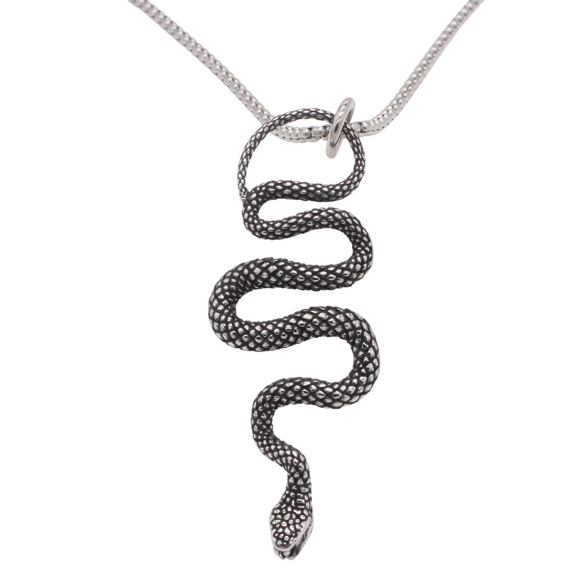 This pendant delivers a striking silhouette that pairs effortlessly with both casual and formal looks. Crafted in durable titanium steel, it offers a modern, masculine edge that remains comfortable for daily wear. The retro snake motif adds a distinctive personality—ideal for gifting to the man who appreciates heritage-inspired style with a contemporary twist. A timeless piece that elevates outfits, sparks confidence, and carries a sense of refinement from Planderful Jewelry.