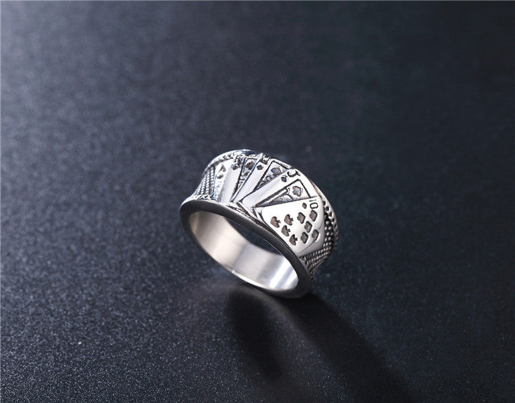 Personalized Retro Playing Card Men's Titanium Steel Ring