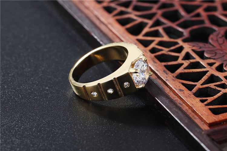 Make a statement with our European and American Fashion Titanium Steel Ring, featuring a personalized wedding diamond accent. Crafted with precision and style, this ring is the perfect combination of elegance and durability.