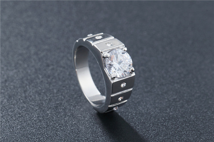 European and American Fashion Titanium Steel Rings with Personalized Wedding Diamond Accent