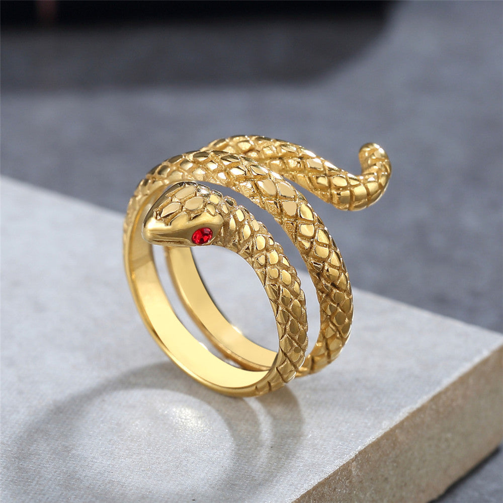 Make a bold statement with our Zircon Eye Coiled Snake Titanium Steel Ring for Men. This stylish ring is crafted with high-quality titanium steel, making it durable and perfect for everyday wear.