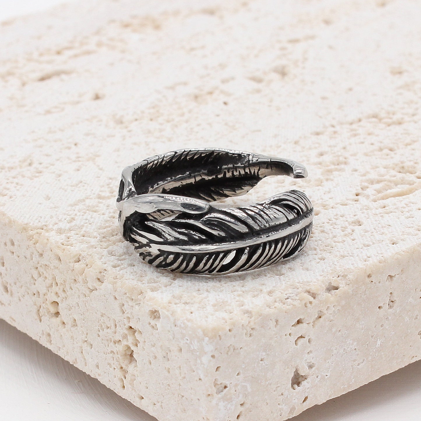 Introducing the Wholesale Cold Wind Retro Feather Titanium Steel Ring from the Planderful Collection. This everyday genie ring boasts a unique retro feather design, making it a standout accessory for any occasion.