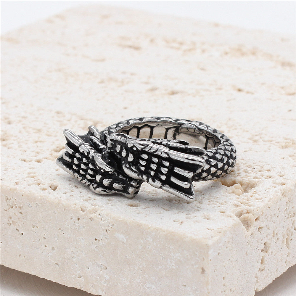 Double Headed Dragon Titanium Steel Ring for Men