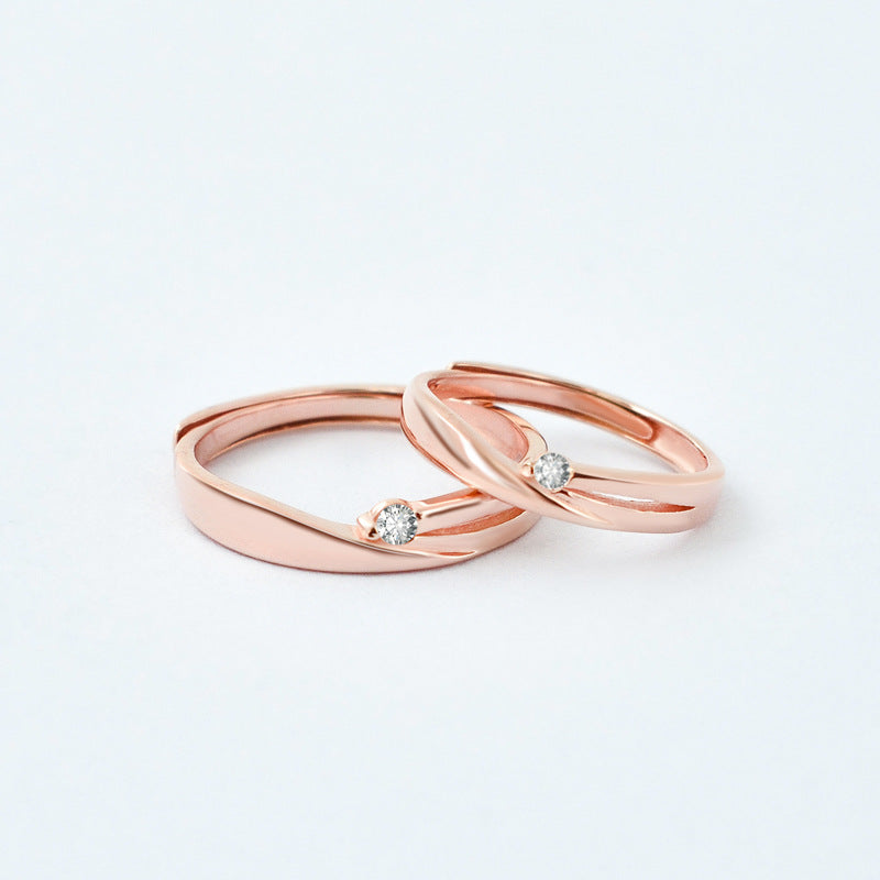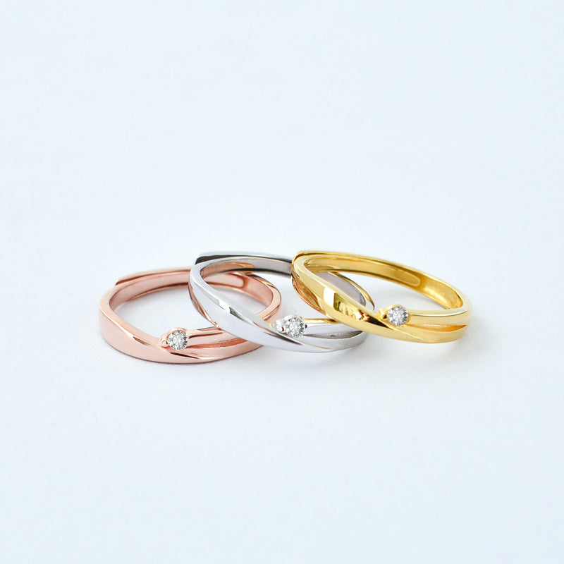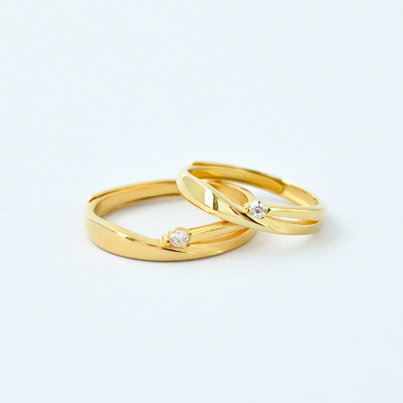 Ribbon Design with Zircon Silver Couple Ring
