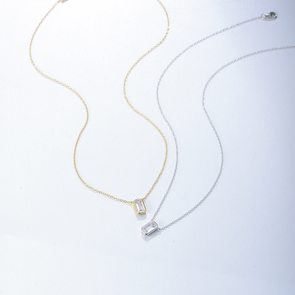 Emerald Shape Zircon Pendant Silver Necklace for Women
