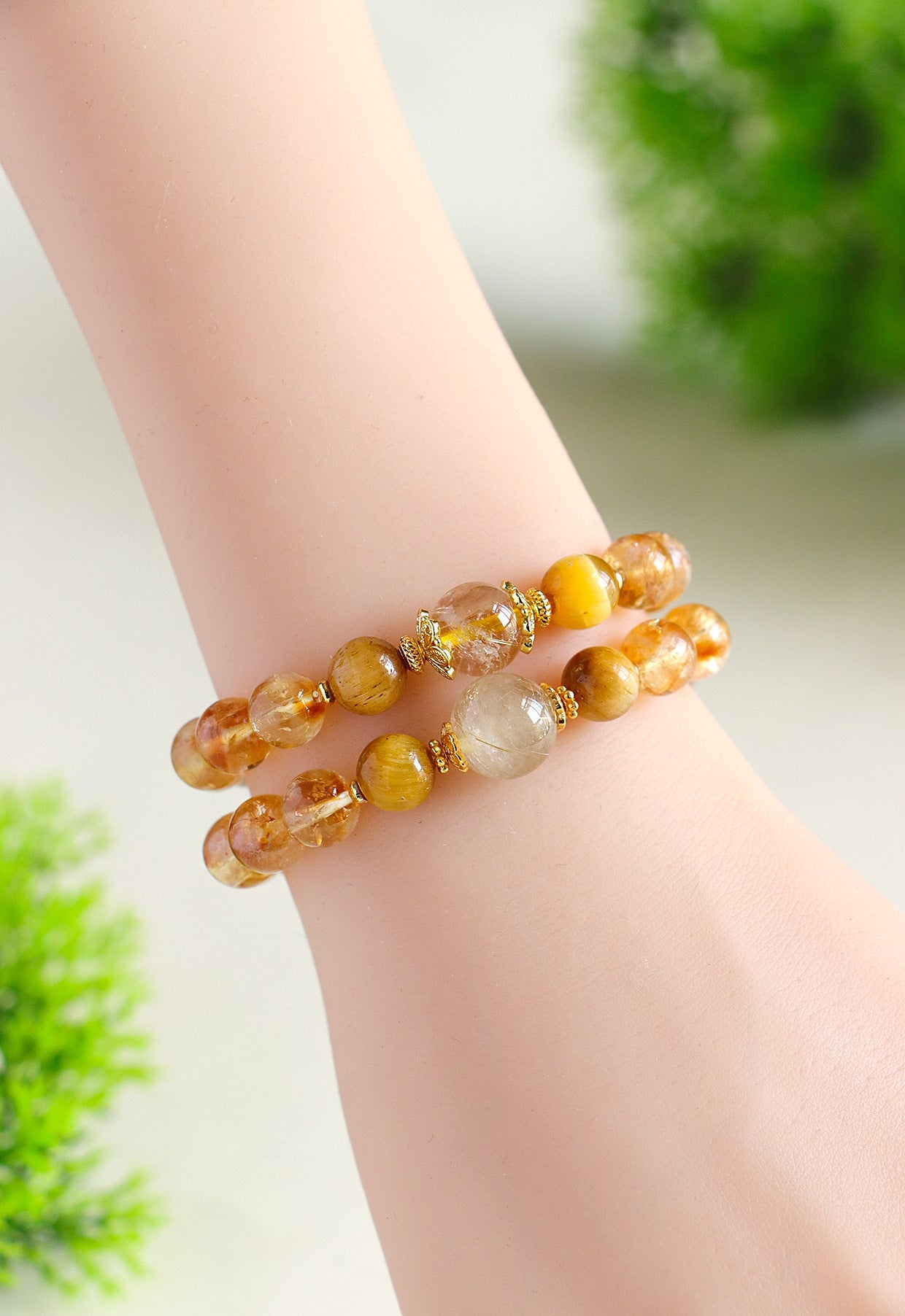 • Golden Tiger Eye Stones: Infused with golden tiger eye, this bracelet enhances clarity and focus while promoting confidence.