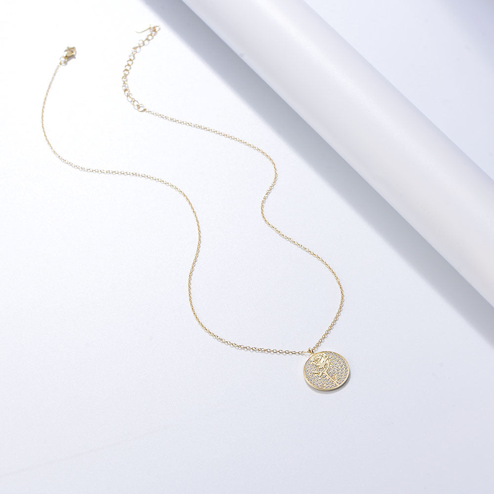 Circular Micro-set Zircon Rose Pendant Silver Collarbone Necklace for Women