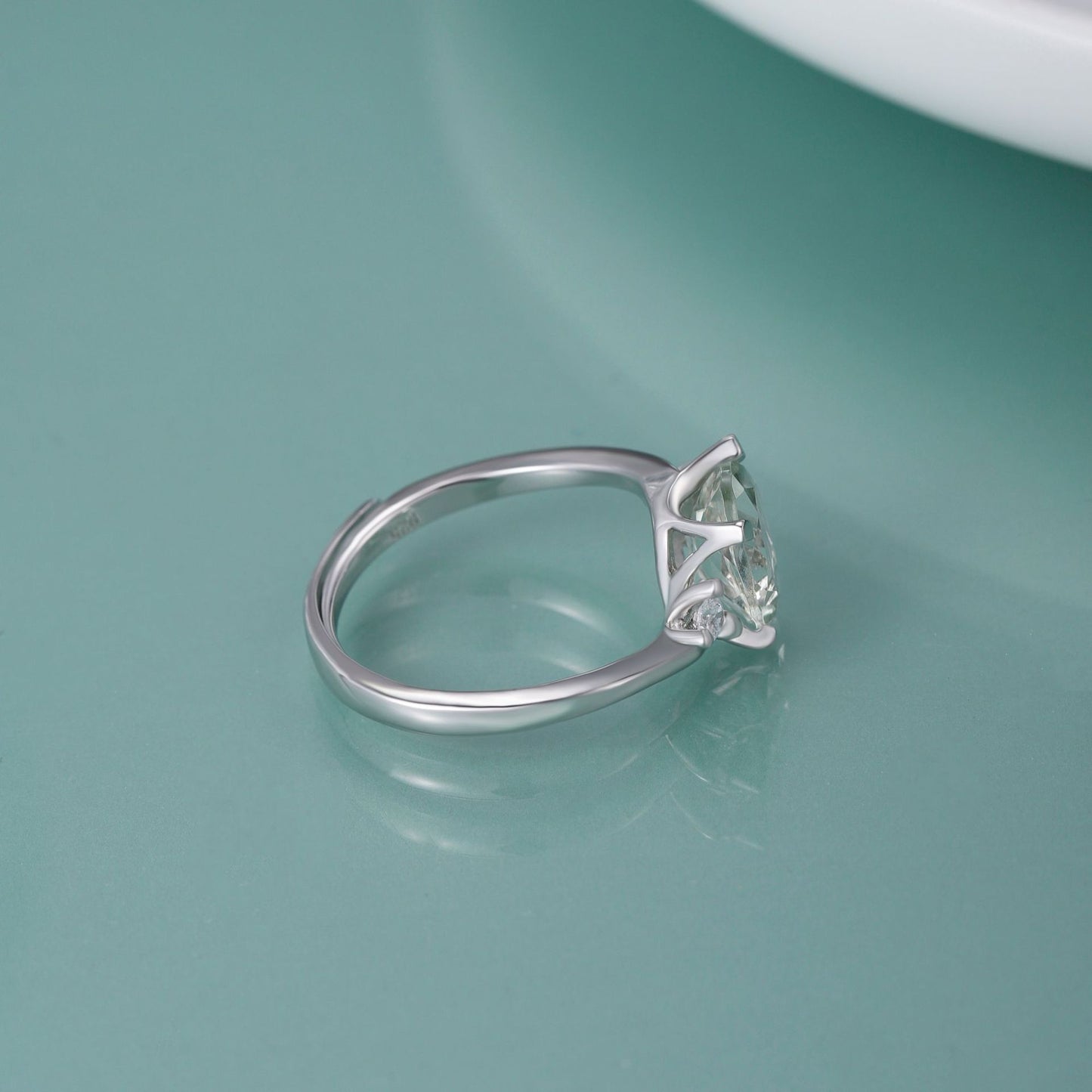 This Adjustable Opening Design Silver Ring is the perfect accessory for any outfit. Featuring an oval-shaped green crystal accented, decorate with two small round zircons on the ring arm, all set atop a sleek sterling silver band for an elegant style. Its adjustable design ensures a comfortable fit.