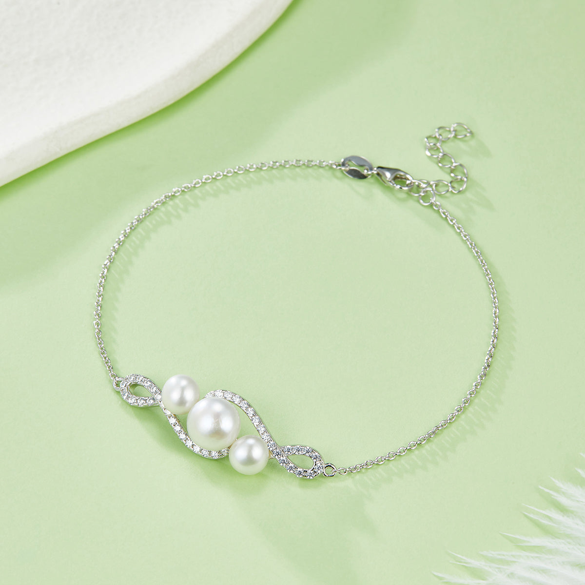 S925 Silver Plated Platinum 8.0MM Freshwater Pearl Bracelet