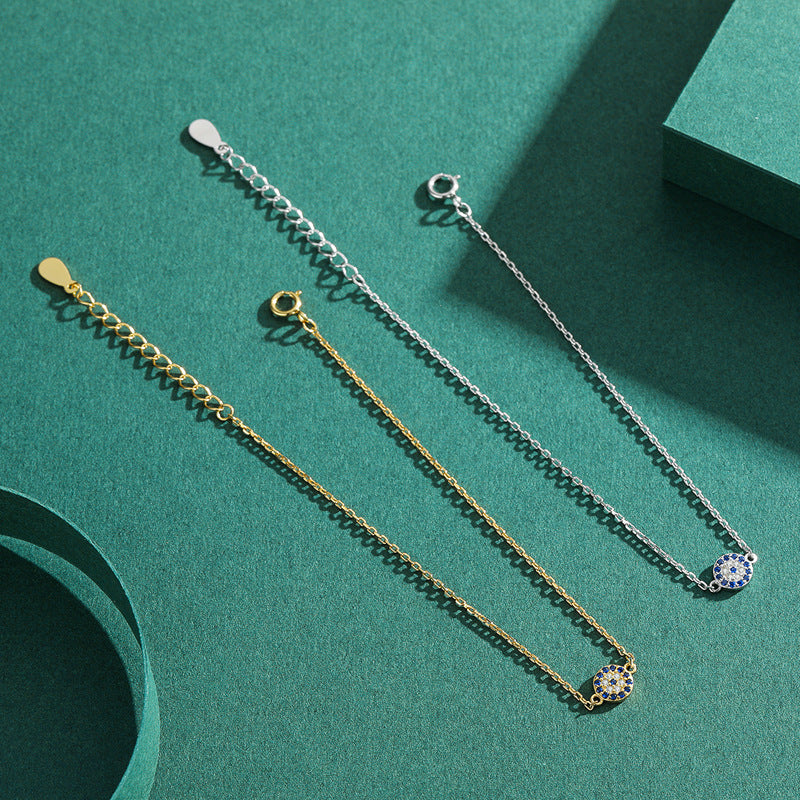 Simple and Elegant Sterling Silver Bracelet with Devil's Eye Design and Zircon Inlay