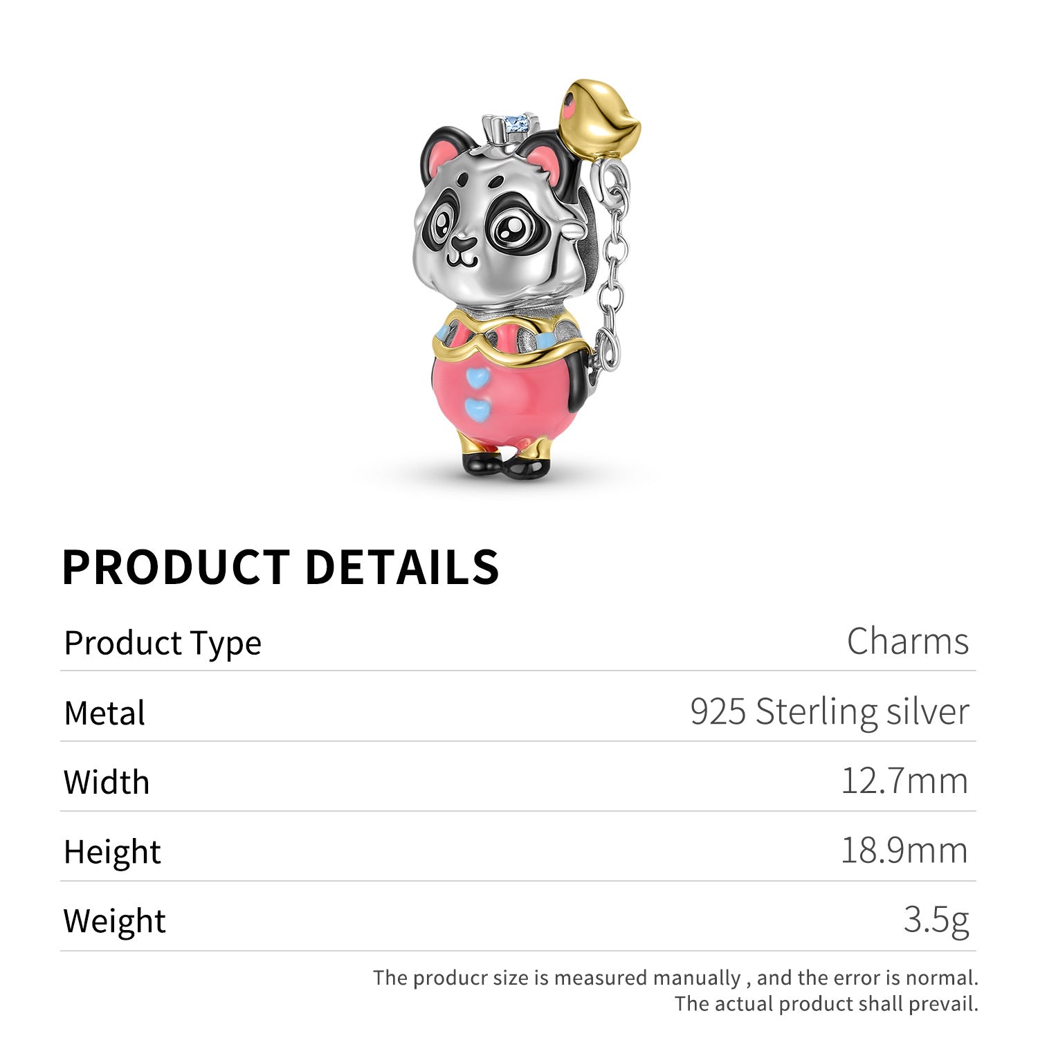 Planderful Jewelry Sterling Silver Beading Pendant Bracelet With 14K Gold Plating And Panda Beads