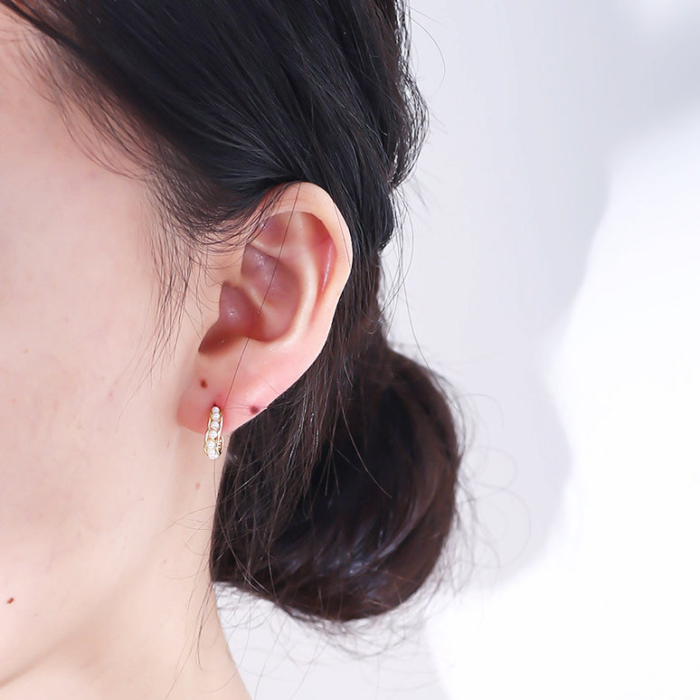 This studs earring is a simple and fashionable accessory, inspired by the C-shaped design, symbolizing perfection and infinity. The earrings are adorned with a row of pearls, adding a touch of elegance and gentleness. The earrings are made of pure silver, with two colour to choose from: gold and silver. Gold represents nobility and luxury, while silver represents purity and nobility.