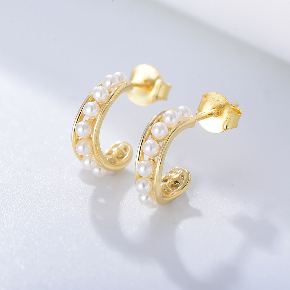 C-shaped Beading Pearl Silver Studs Earrings for Women