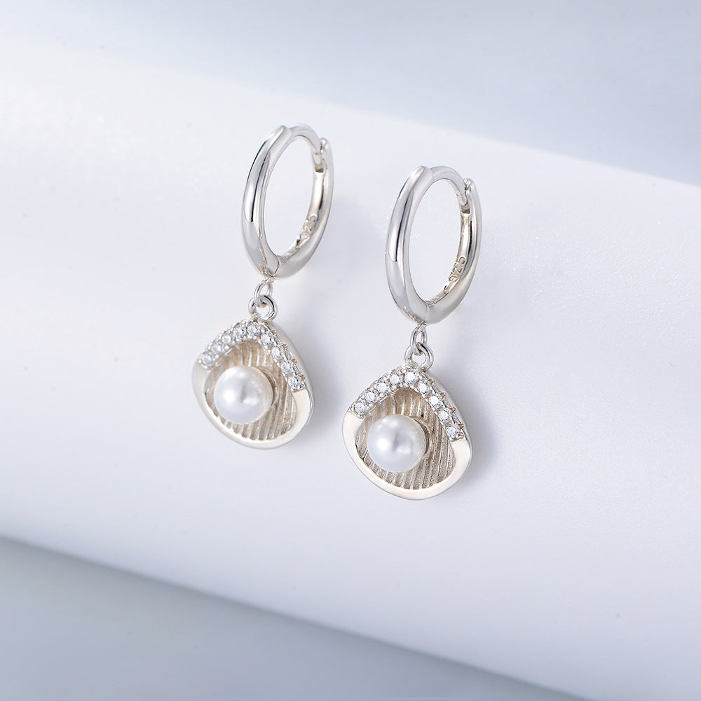 This beautiful Shell with Pearl Silver Drop Earrings add a touch of elegance to any woman's wardrobe. Crafted from a the delicate shell pendant with a  brilliant pearl, is sure to make a statement. Perfect for special occasions or everyday wear.