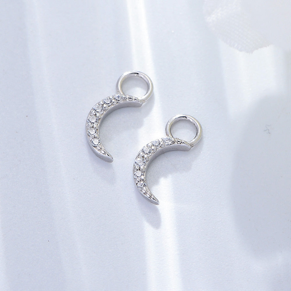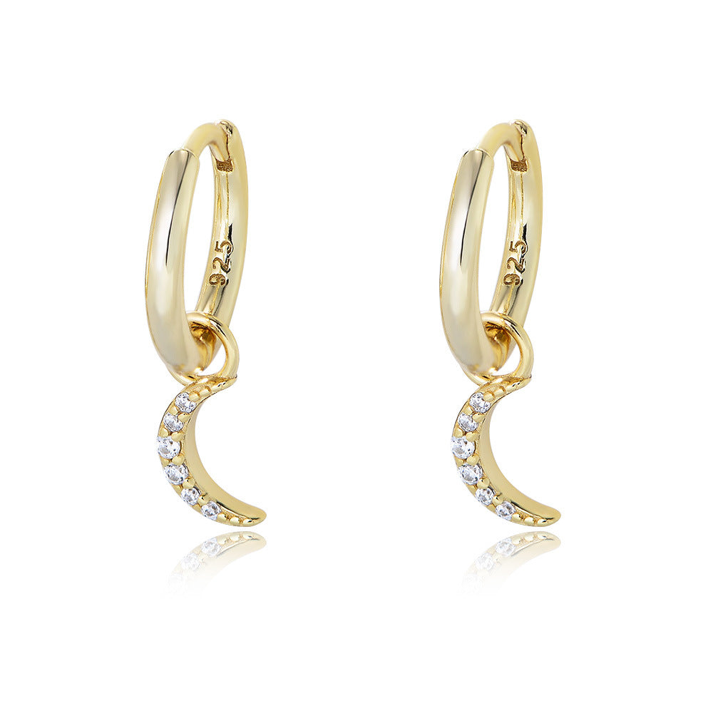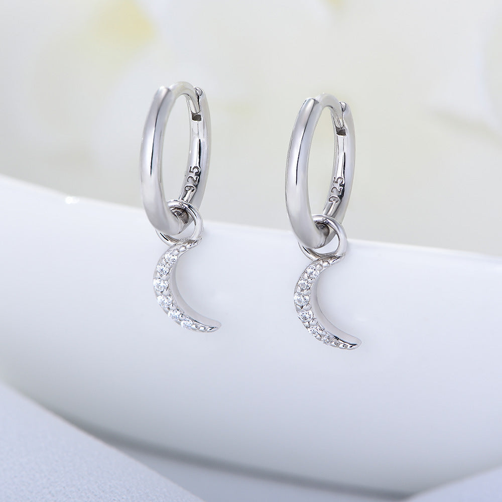 Zircon Moon Pendant Silver Hoop Earrings for Women