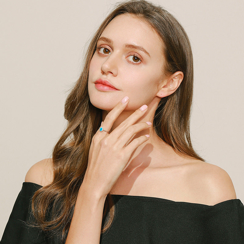 Sterling Silver Oval Turquoise Ring - Exquisite European and American Style