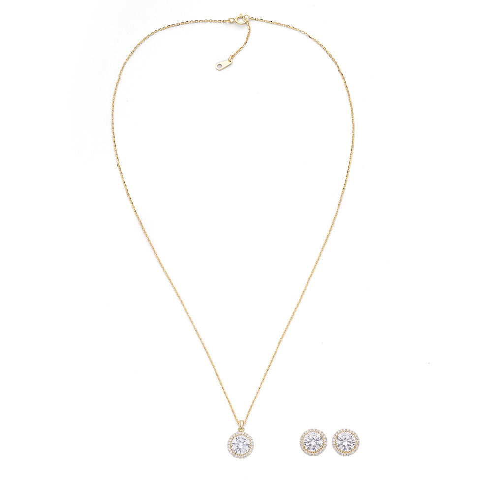 Soleste Halo Round Zircon Silver Necklace Earrings Set