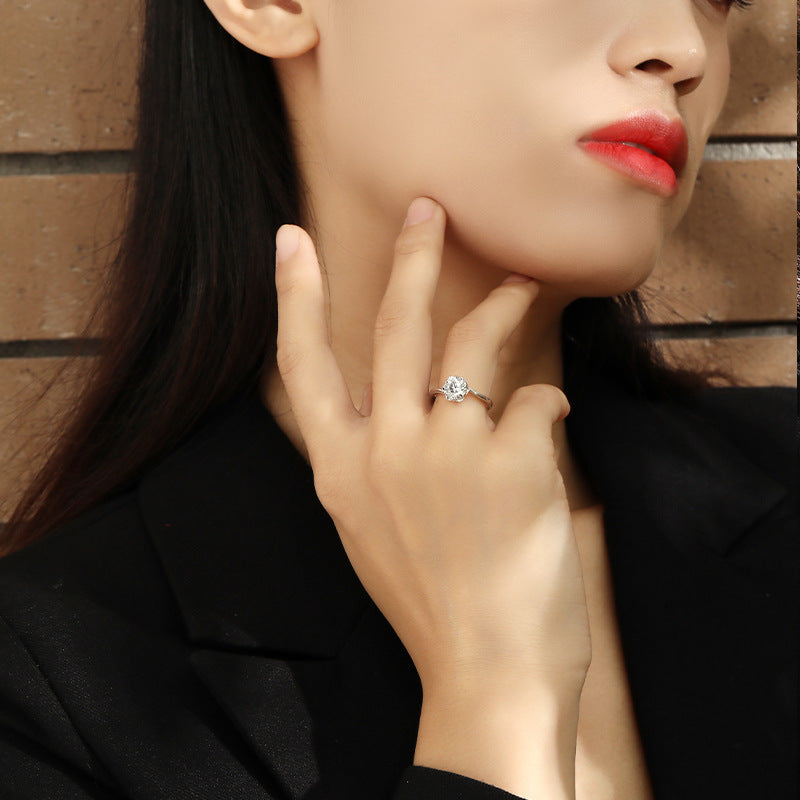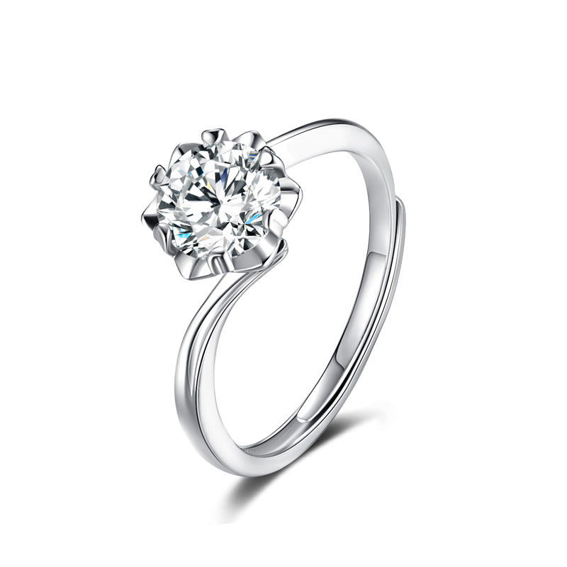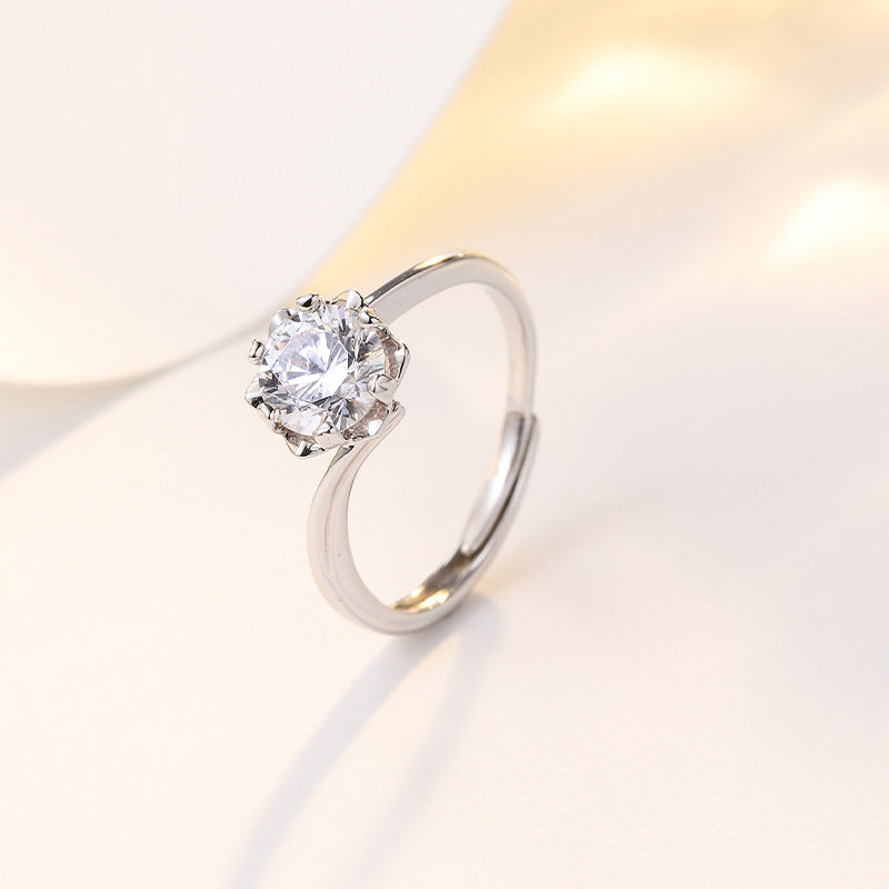 This elegant Round Zircon Flower Solitaire Silver Ring features an adjustable opening and a Round Zircon with Flower shape prongs, for a timeless addition to any jewelry collection. Crafted with quality sterling silver, this ring is sure to last.