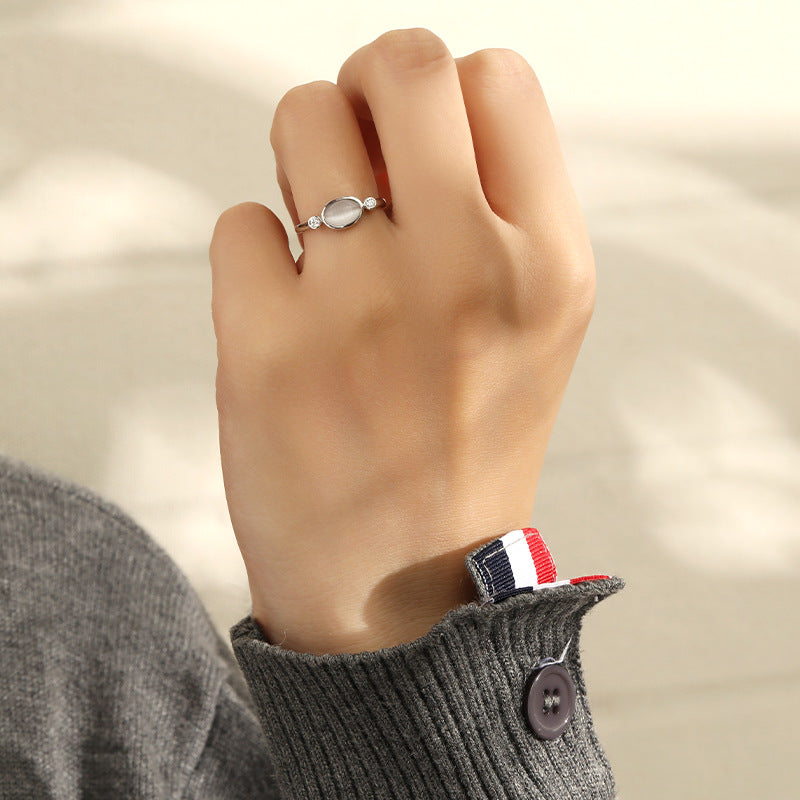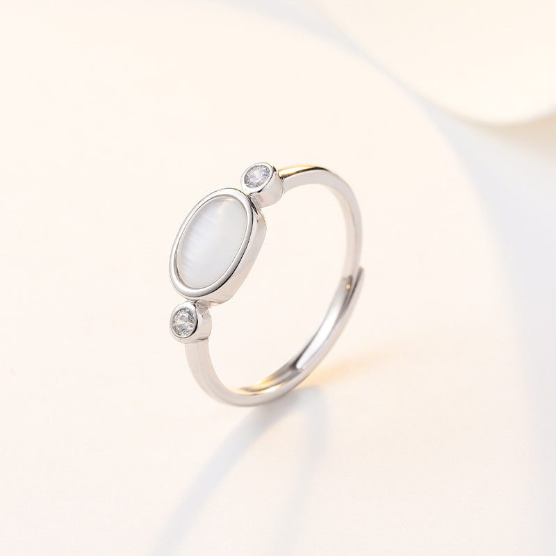 This elegant ring for women is crafted with an oval opal stone, beautifully decorated with two small zircons on the ring arm for additional sparkle. Crafted from sterling silver, this charming piece is sure to be a favorite addition to your jewelry collection.