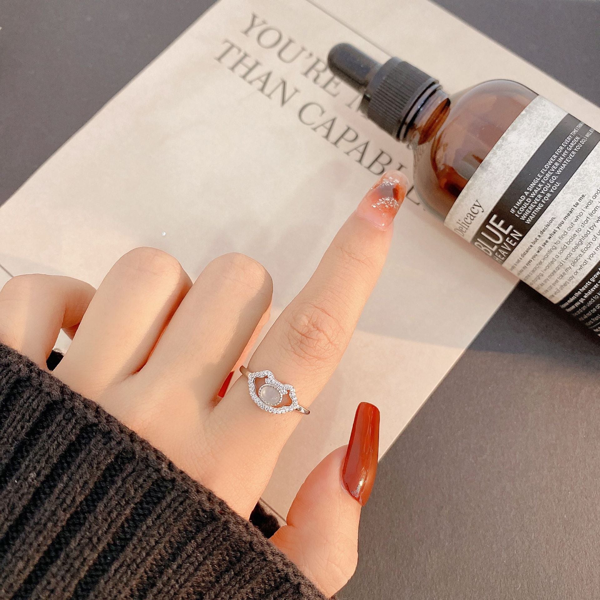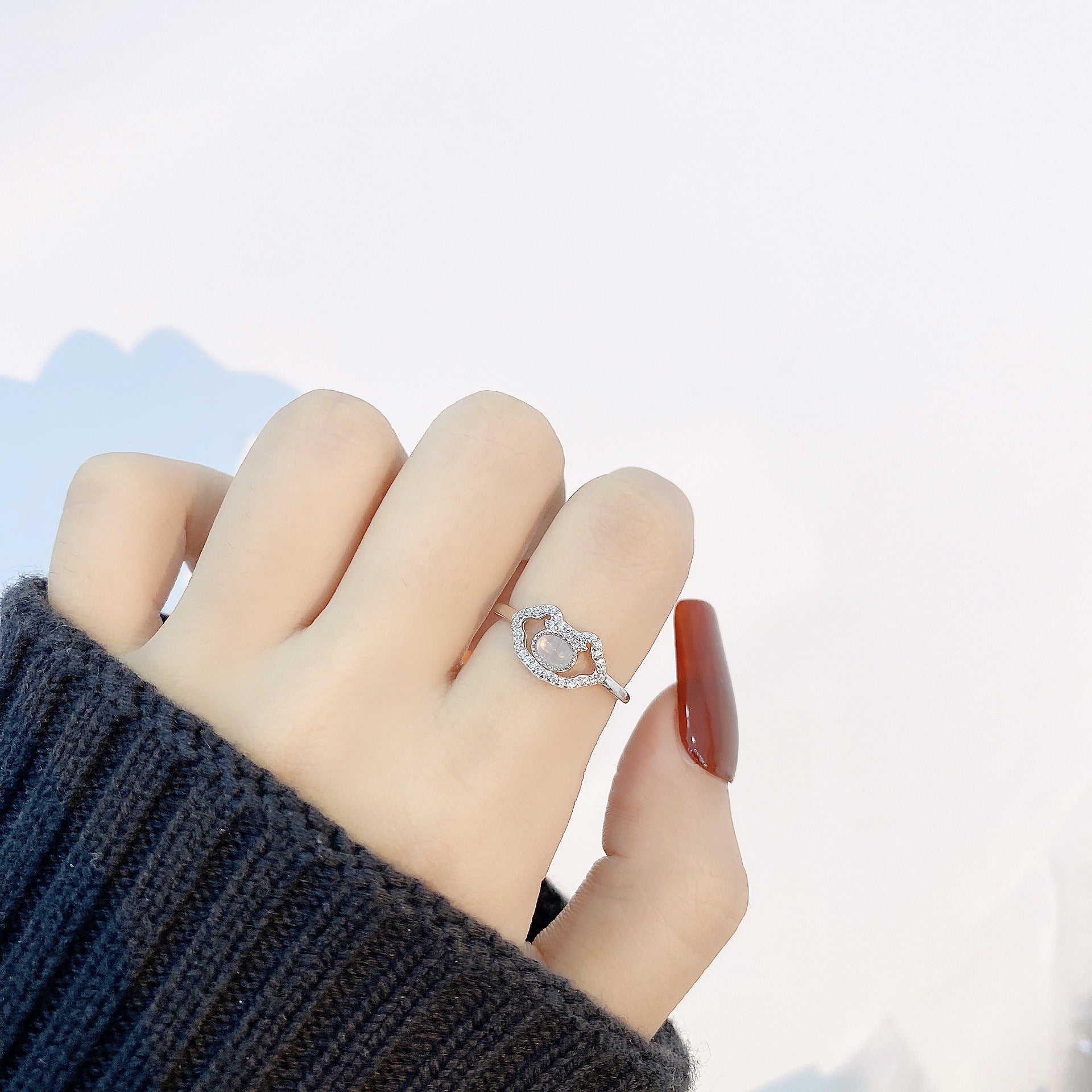 This elegant silver ring for women features an adjustable opening and an eye-catching design combining an oval opal stone and zircon in a geometric mouth shape. Crafted with attention to detail, this ring is perfect for your everyday look and special occasions.