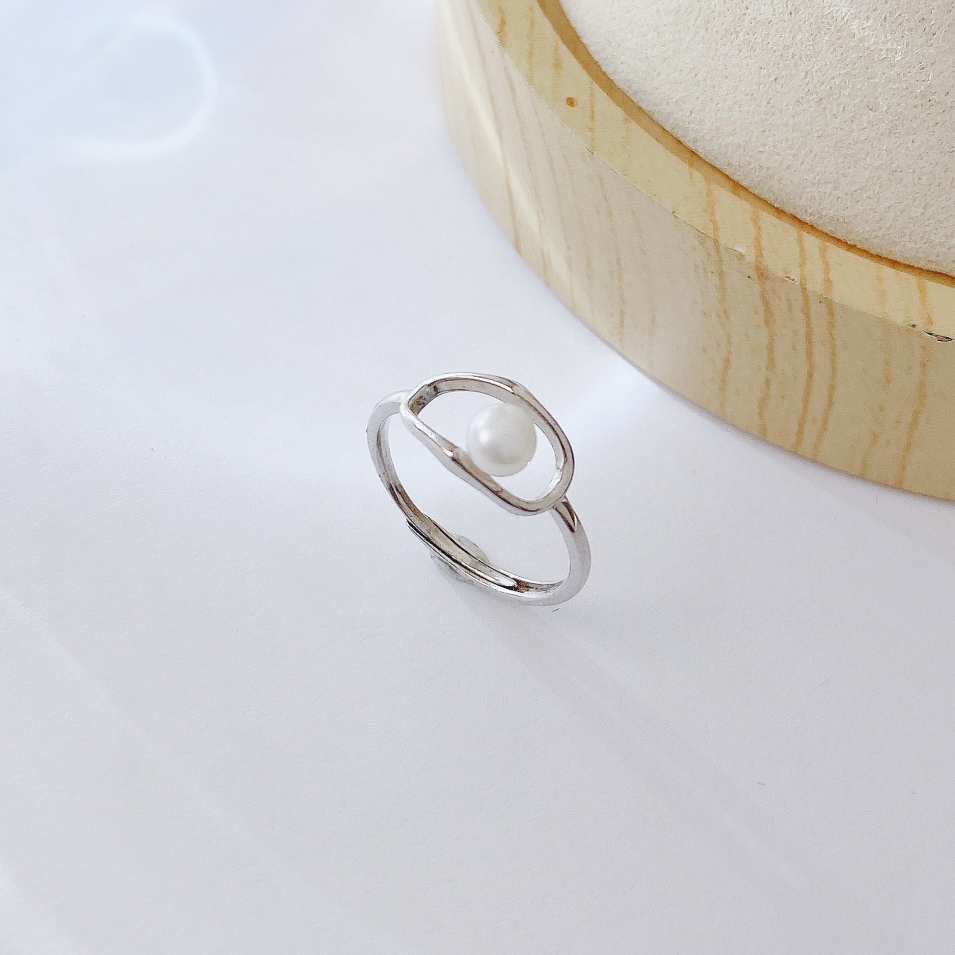 Hollow Oval Shape with Pearl Silver Ring for Women