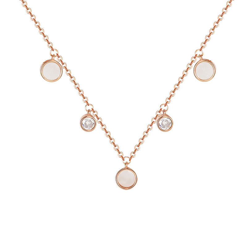 This elegant silver necklace has been crafted with three mother of pearl round pendants and two zircon round pendants beading, providing sparkle and glamor. The Mother of Pearl adds a unique, appealing touch, and the sterling silver construction ensures this necklace will last for years to come.