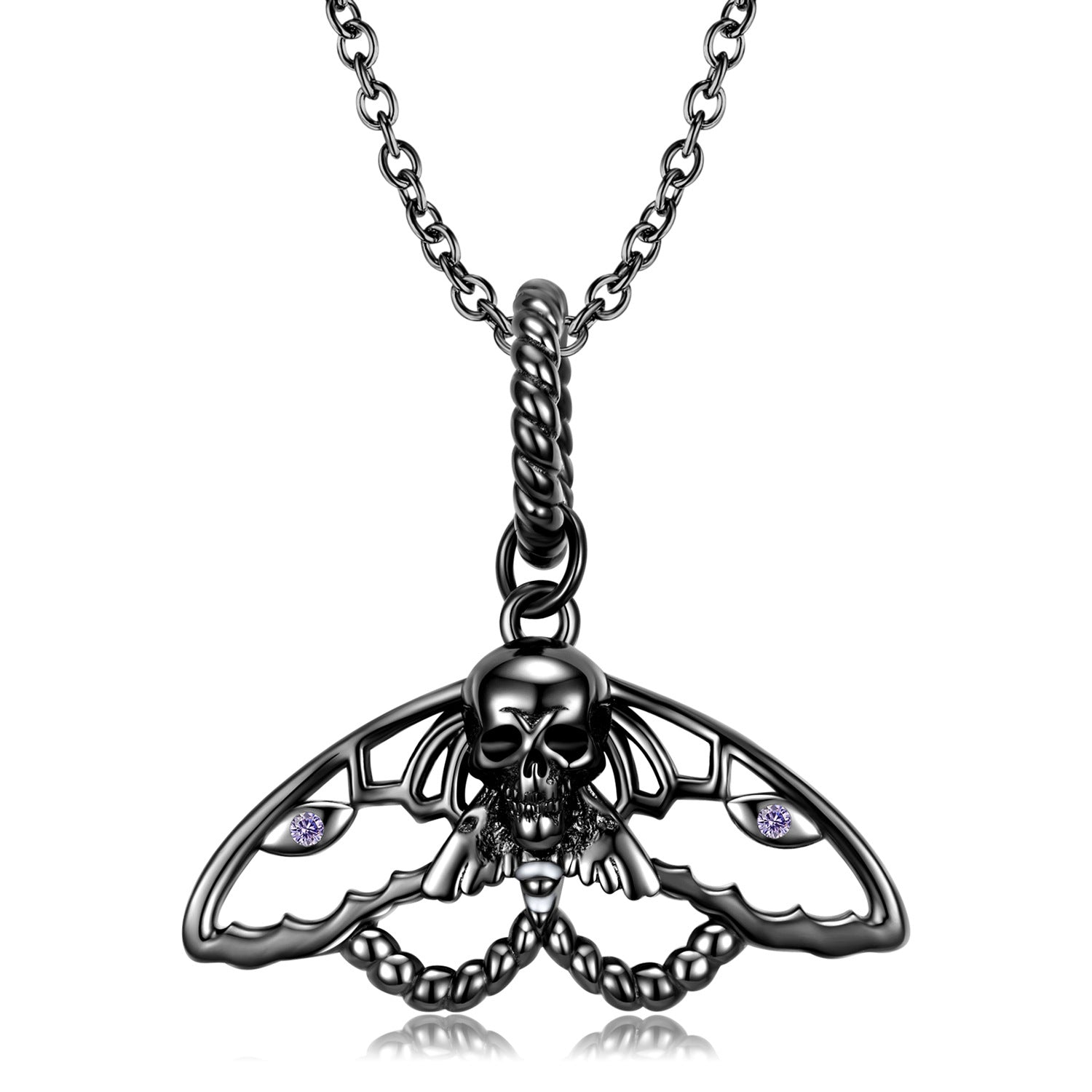 Halloween Black Skeleton Moth Pendant Silver Necklace