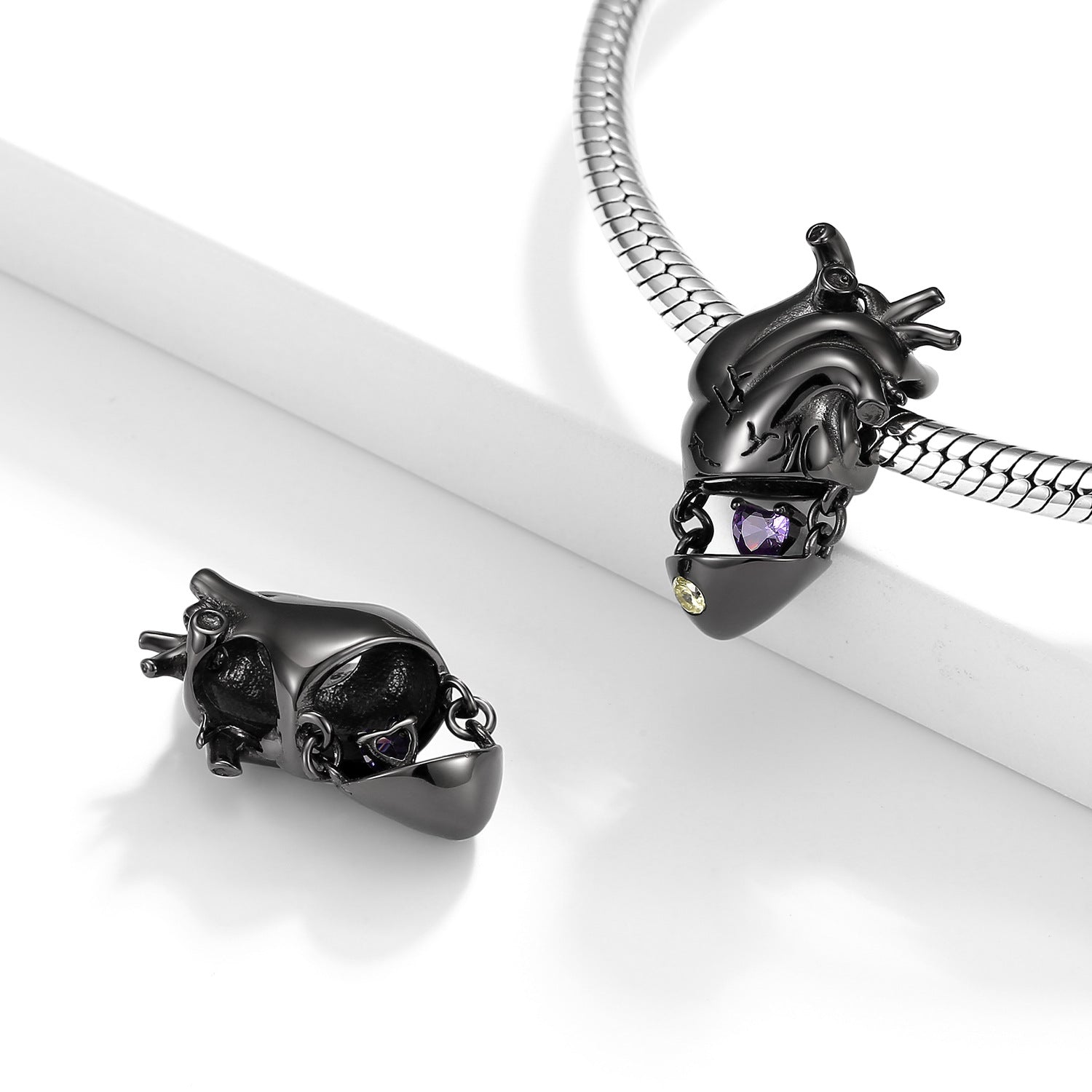 This beautiful black Split Heart Zircon Silver Pendant is decorated with a heart-shaped purple zircon and a yellow zircon, creating a unique and eye-catching piece. It's a perfect accessory for DIY your necklace or bracelet.