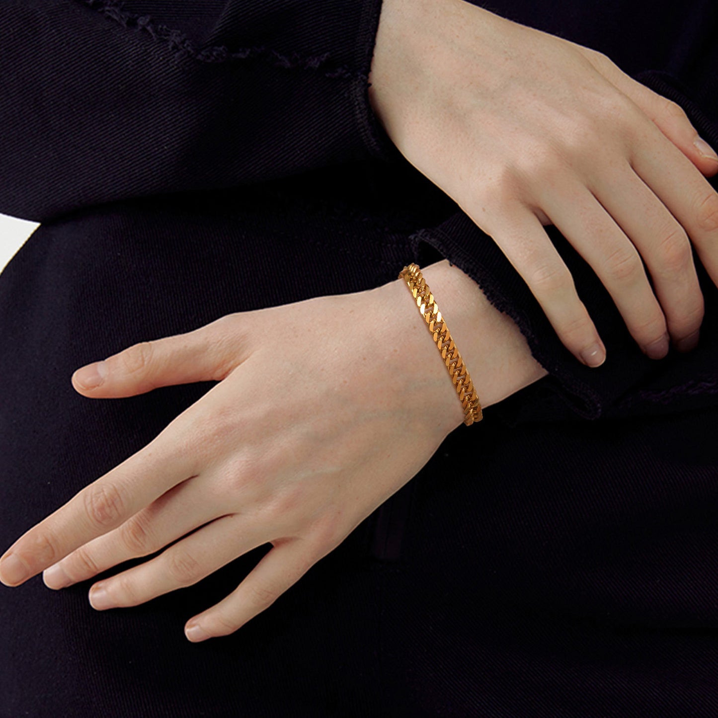 Featuring a double woven chain design, this Cuban chain bracelet offers a unique aesthetic that effortlessly blends punk and hip-hop styles. The golden finish adds a touch of luxury, ensuring you stand out in any crowd. Whether you're dressing up for a night out or adding flair to your everyday look, this bracelet is versatile enough to match your personal style.
