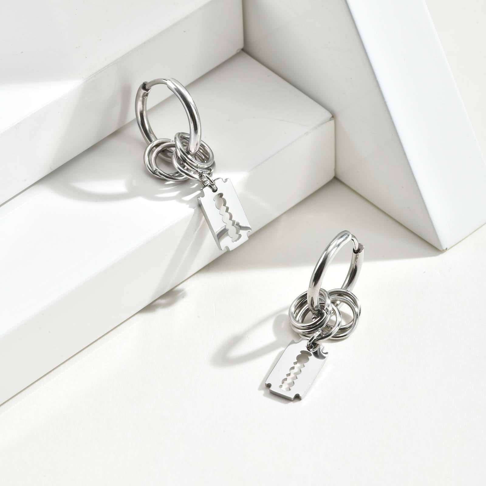 These stainless steel earrings deliver a durable, low-maintenance option that pairs well with casual and polished looks alike. The blade ring design provides a contemporary edge without sacrificing comfort, making them suitable for everyday wear or as a standout gift for men who appreciate clean lines and lasting quality.