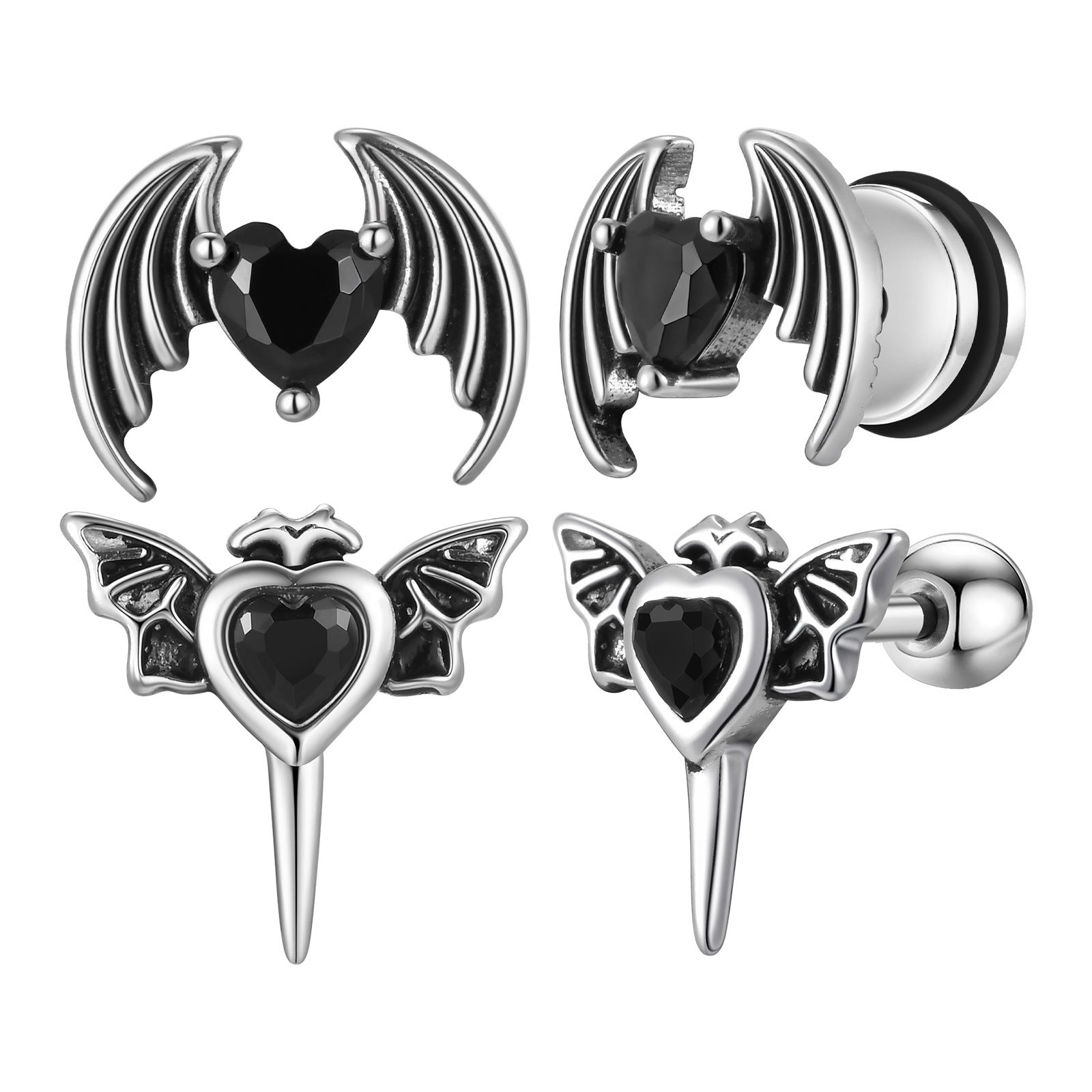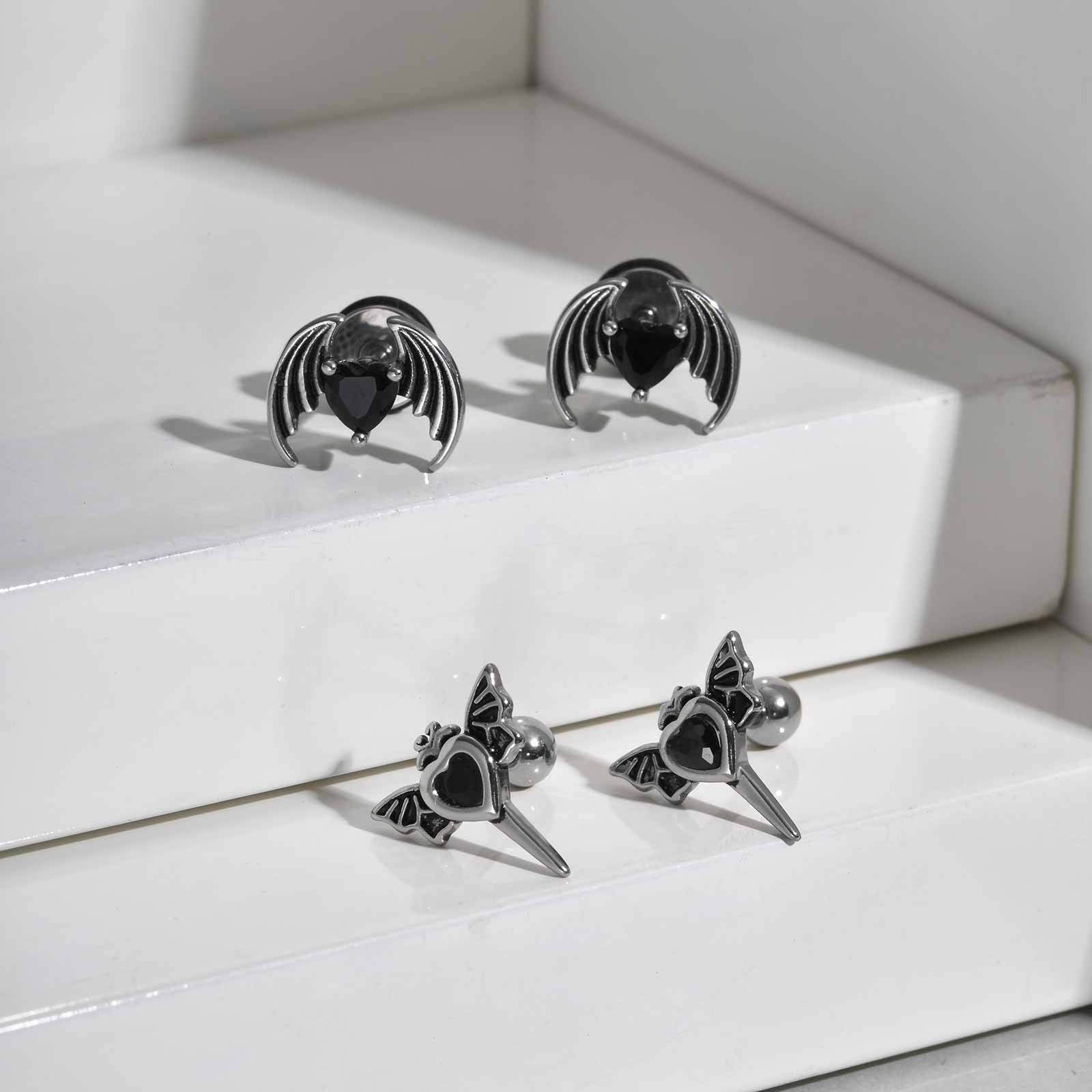 Planderful Heart Wing Stud Earrings Unisex Stainless Steel