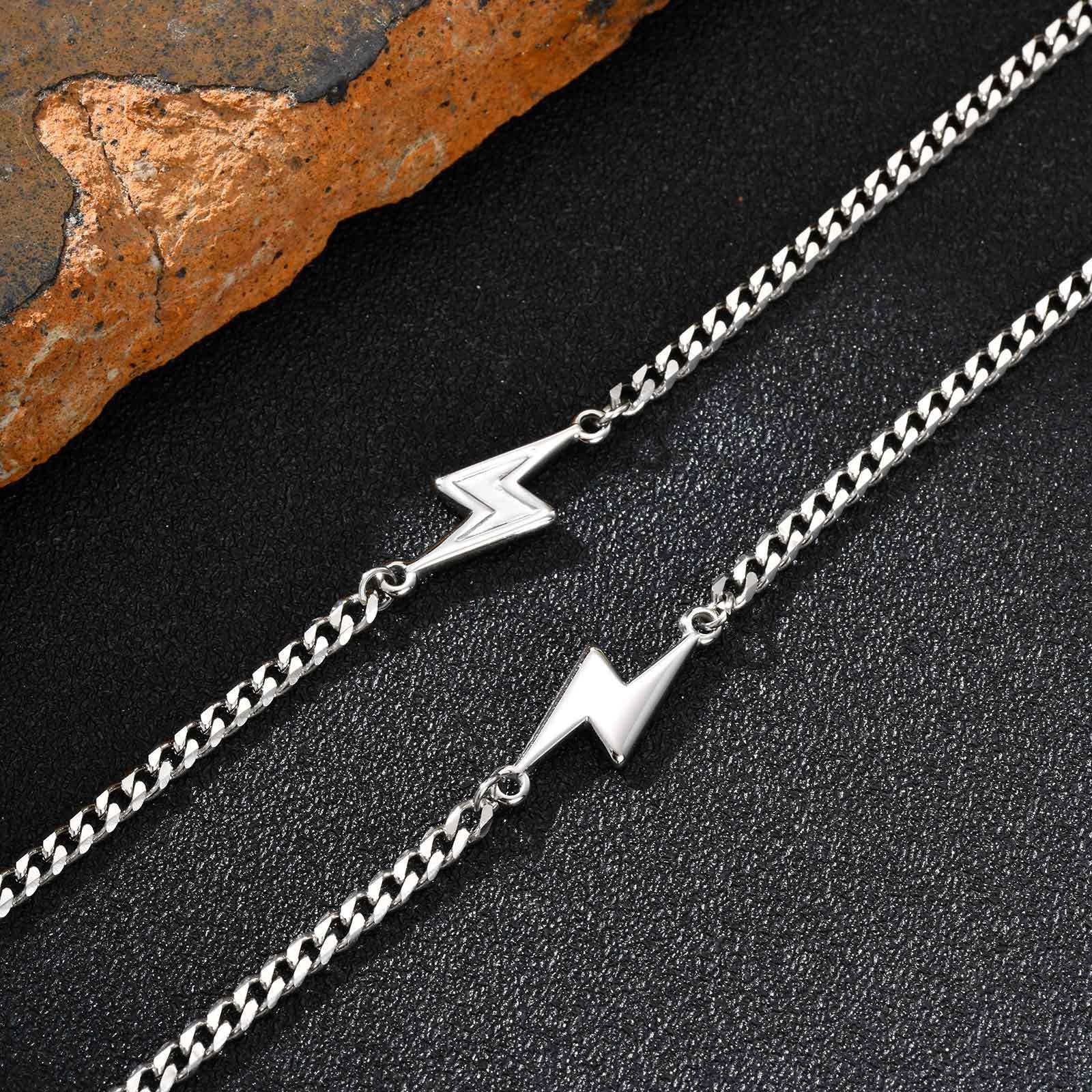Meet a sleek stainless steel chain bracelet designed for men and perfect for couples seeking a simple, personalized touch. The lightning-shaped accent adds contemporary flair to everyday wear.