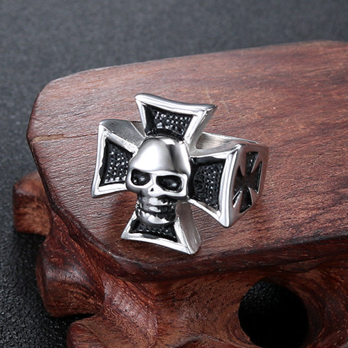 Titanium Steel Cross Skull Ring for Men - Retro European and American Religious Totem Jewelry
