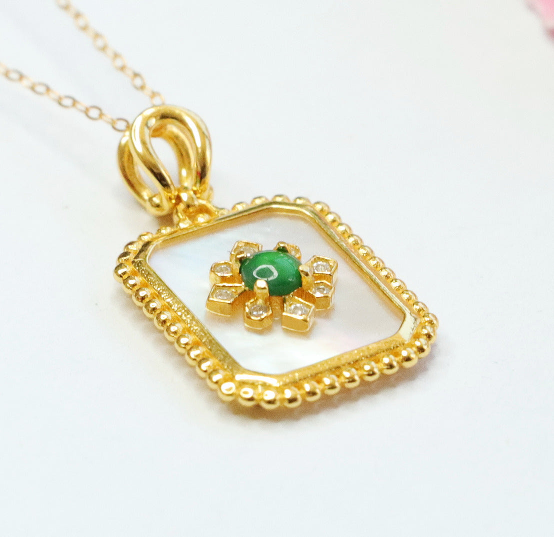 • Adorned with a zircon flower and golden rectangle pendant for a touch of glamour