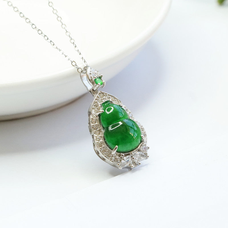 Imperial Green Jade Gourd Necklace with Zircon accent
