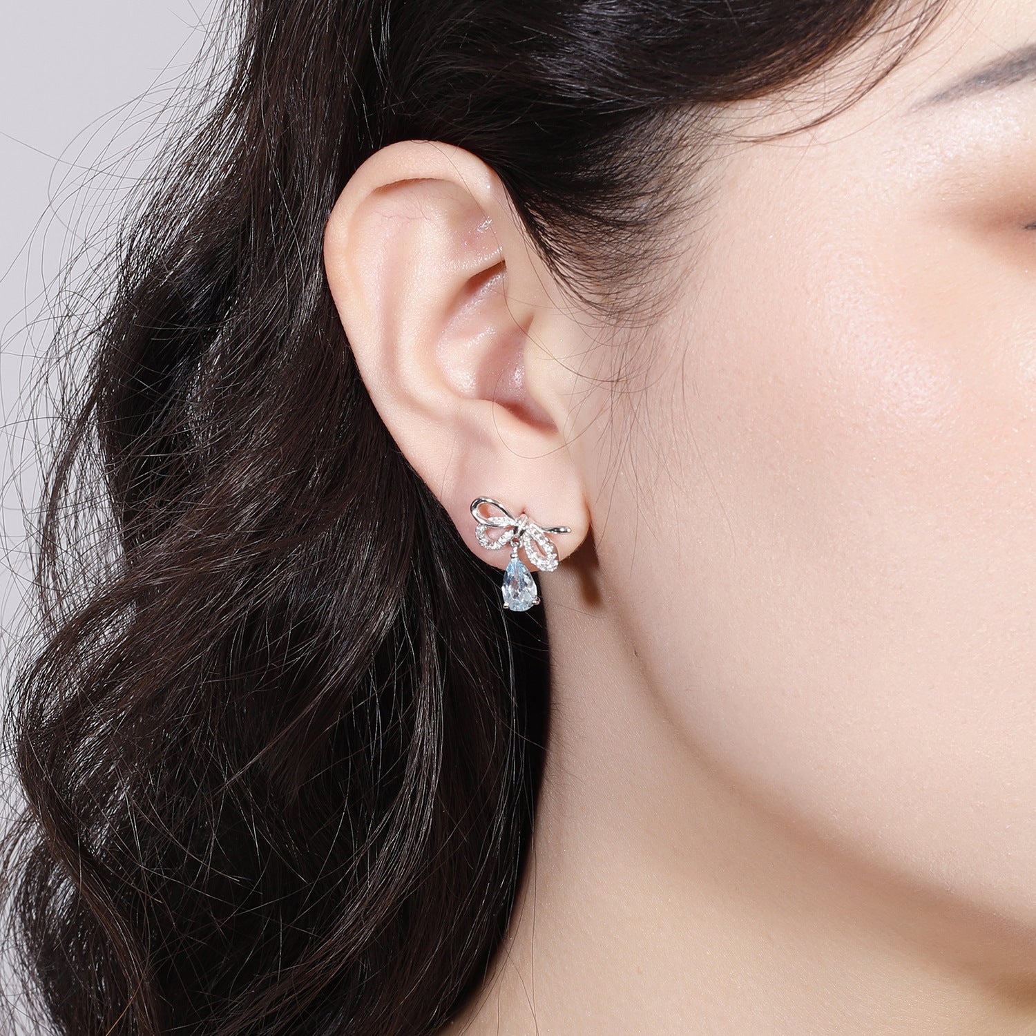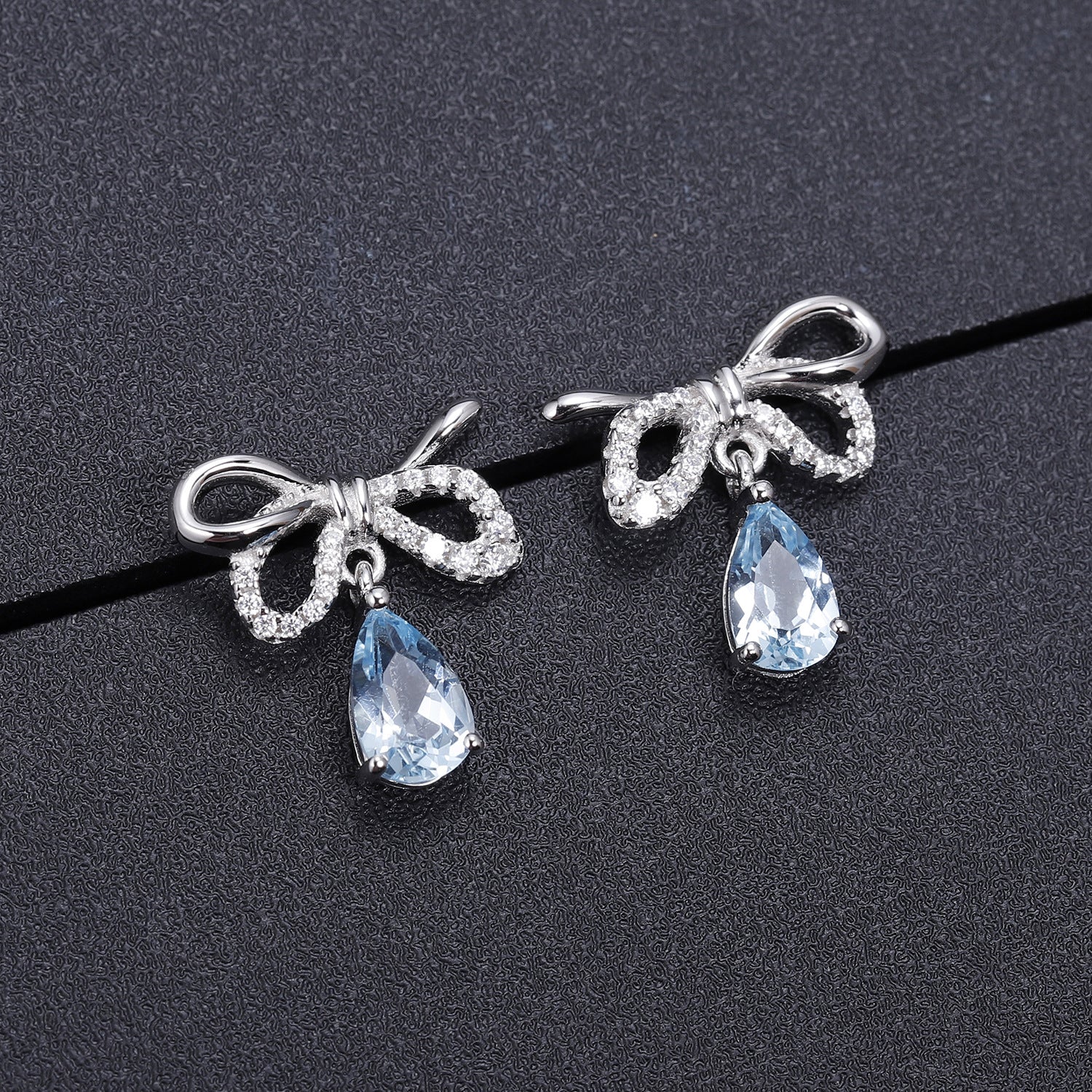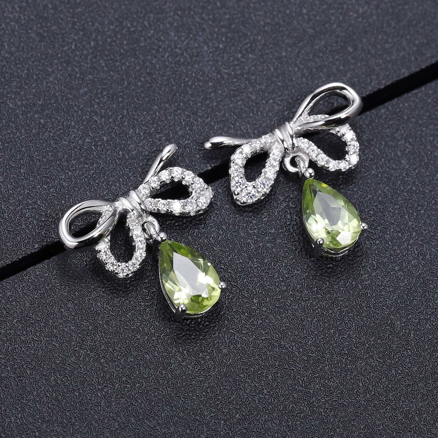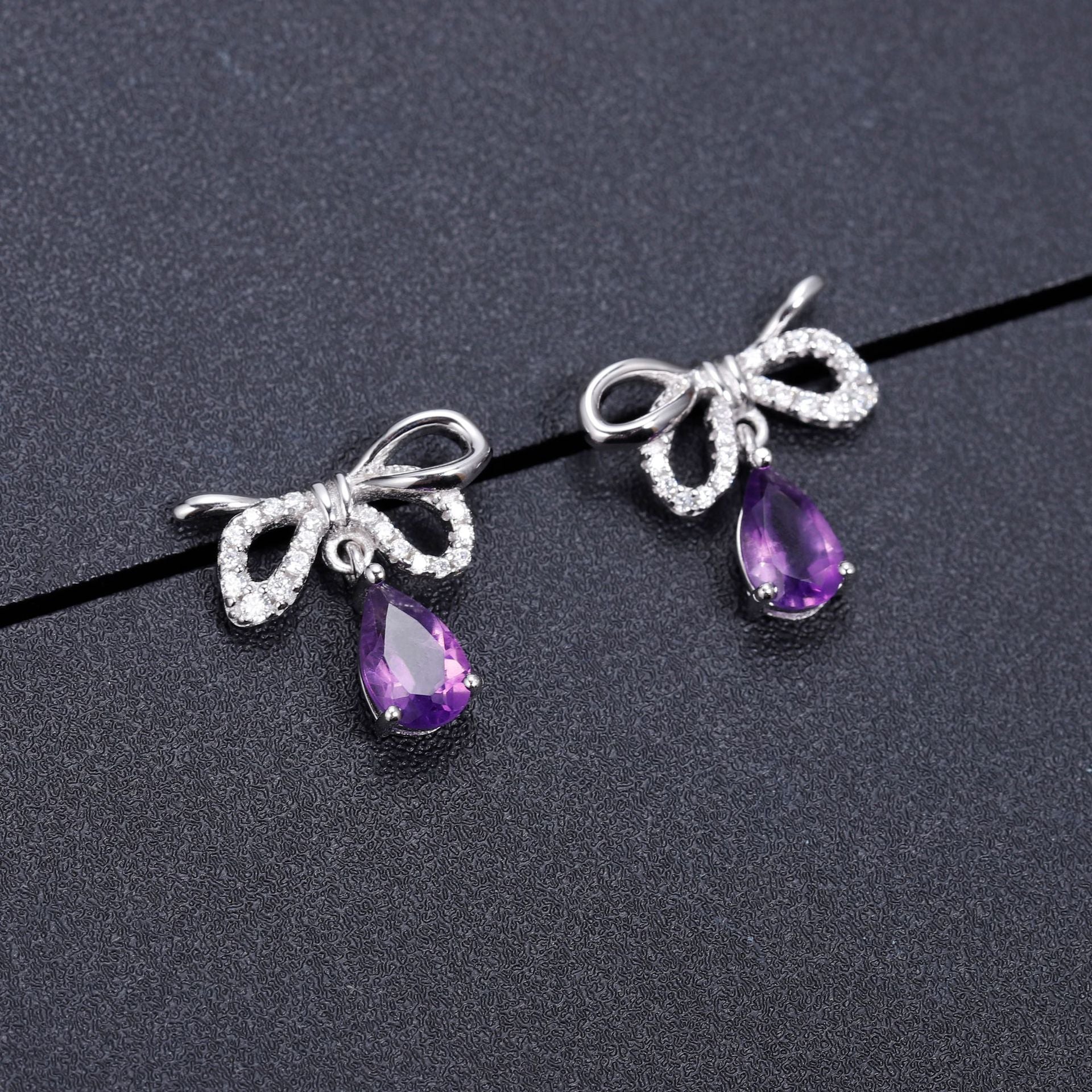 Sweet Bowknot Pear Shape Natural Gemstone Silver Drop Earrings