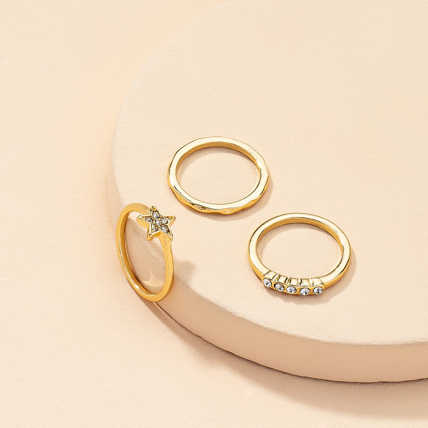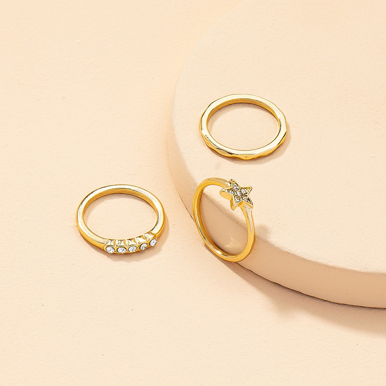 Golden Star and Zircon Ring Set with Cross-Border Design
