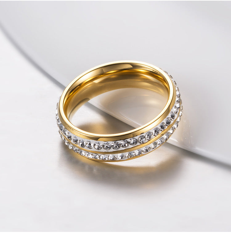 Titanium Steel Double Row Zircon Ring for Women Korean Style