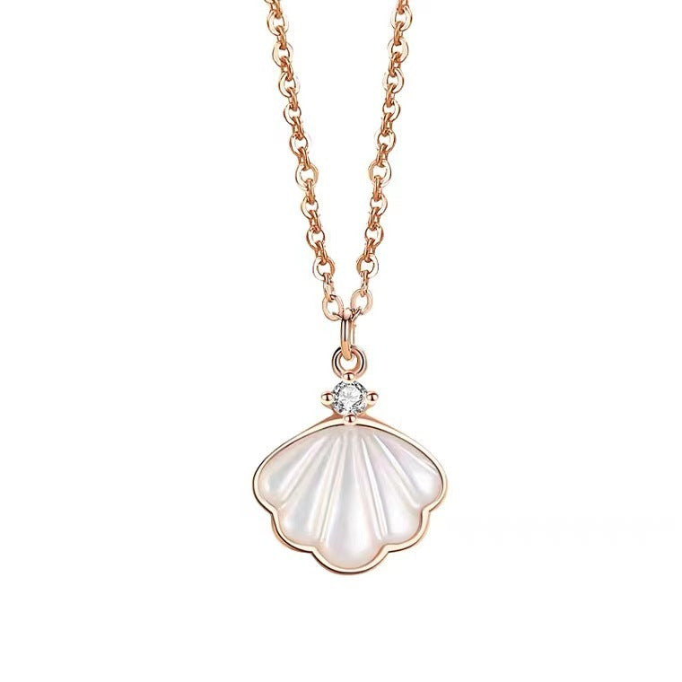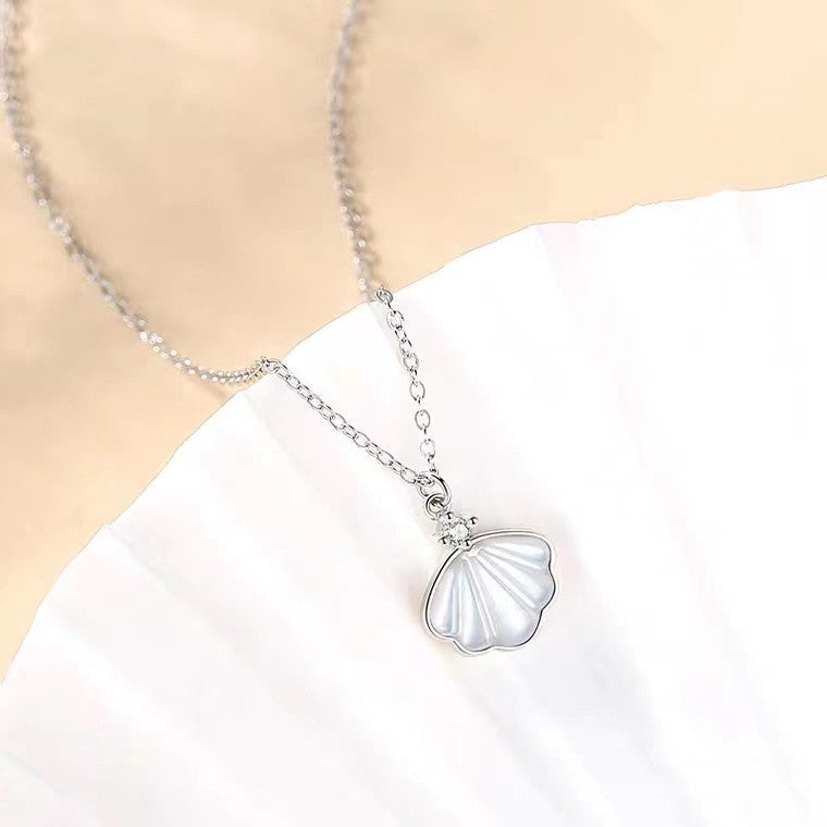 (Two Colours) Shell-Shaped Pendants 925 Silver Collarbone Necklace for Women