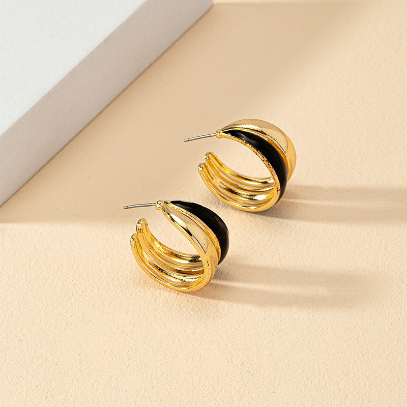 Embrace sophistication with our Versatile Temperament, European and American Simple Geometric Drip Oil Earrings. Elevate your style effortlessly with these high-end designed, niche earrings that exude luxury and charm.