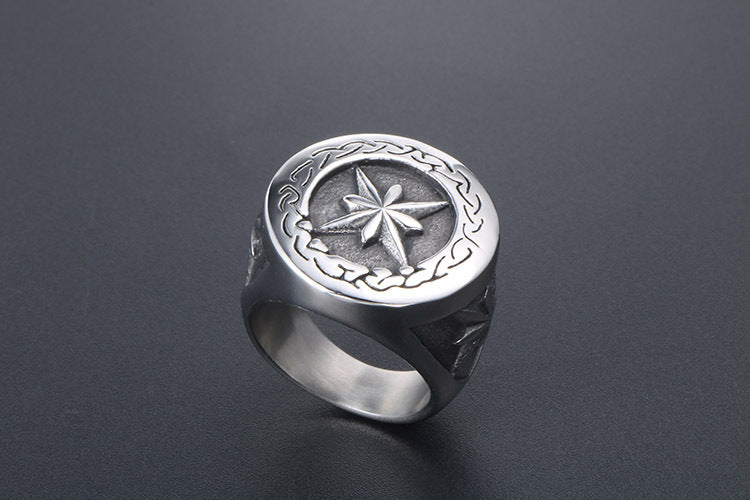 Titanium Steel Retro Star Ring For Hip Hop Men Fashion