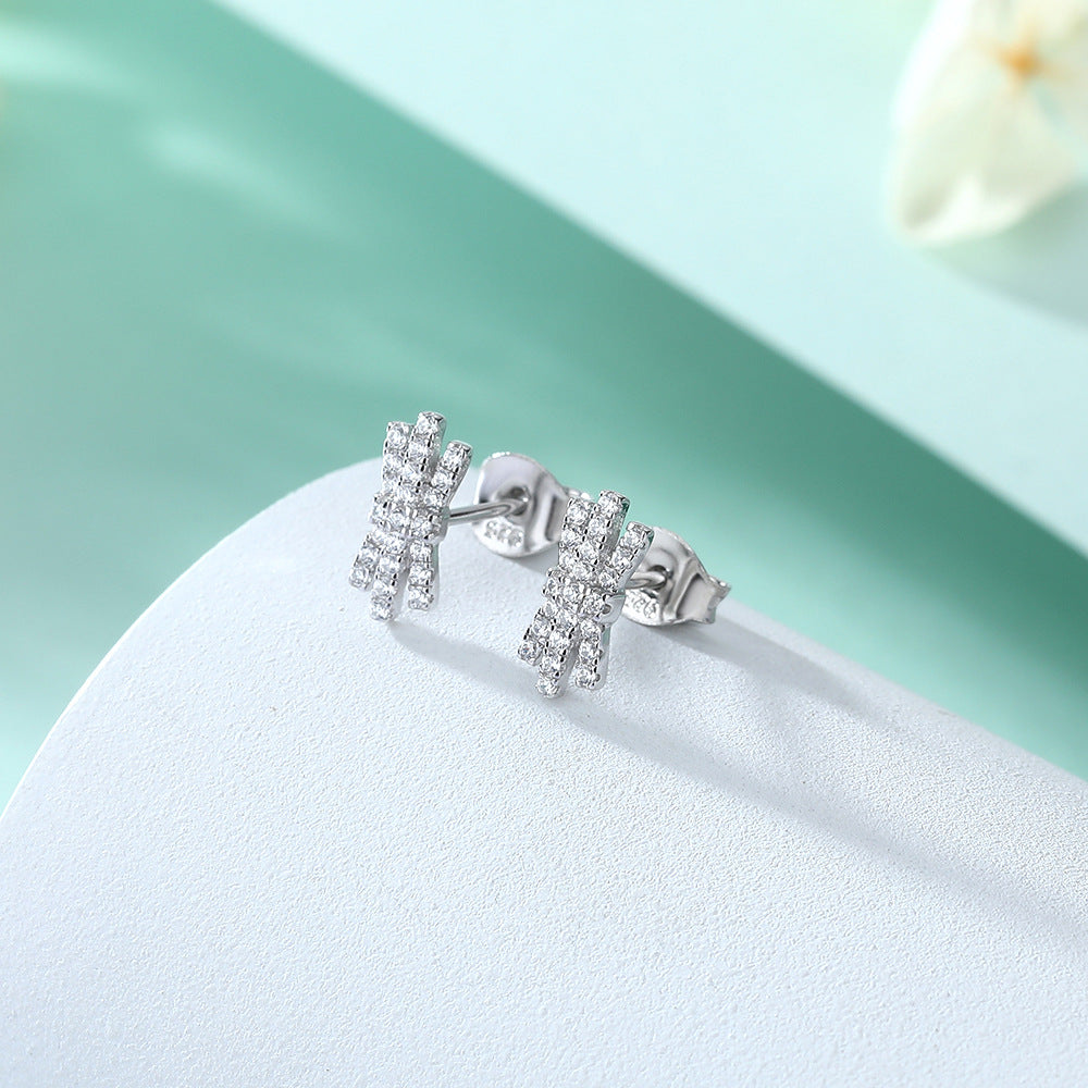 Zircon Bow Silver Studs Earrings for Women