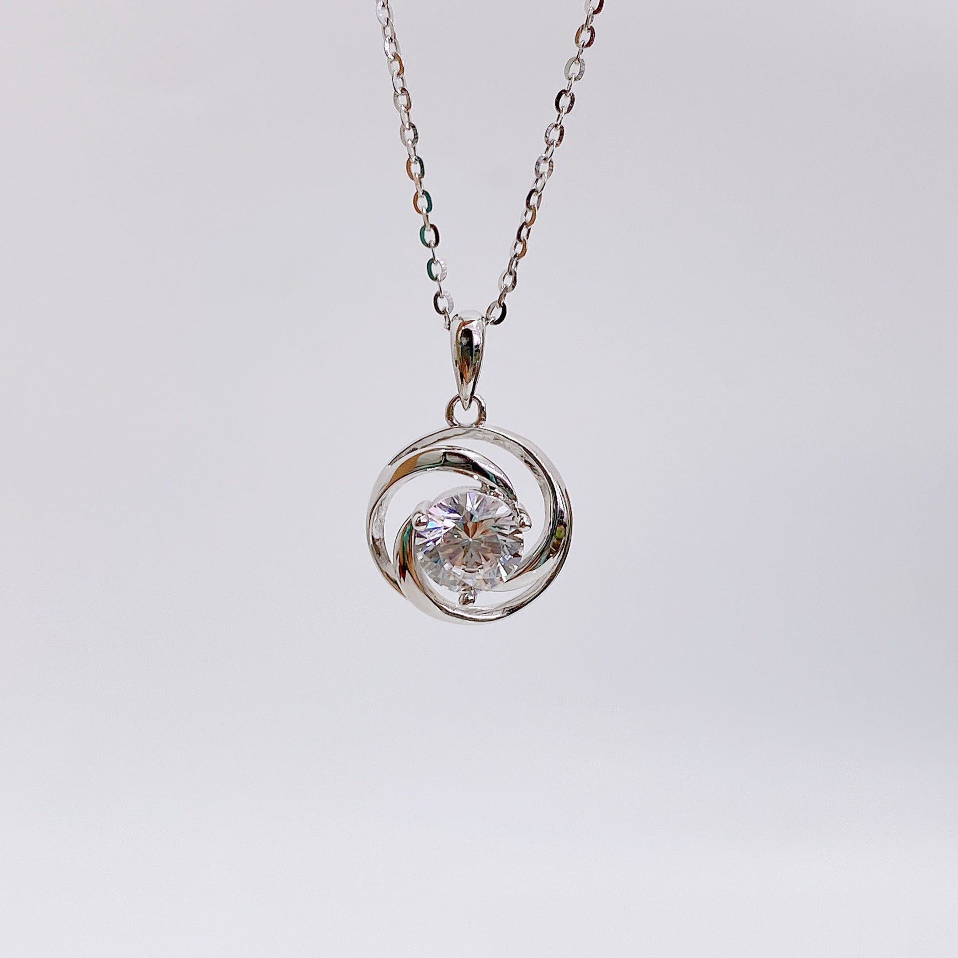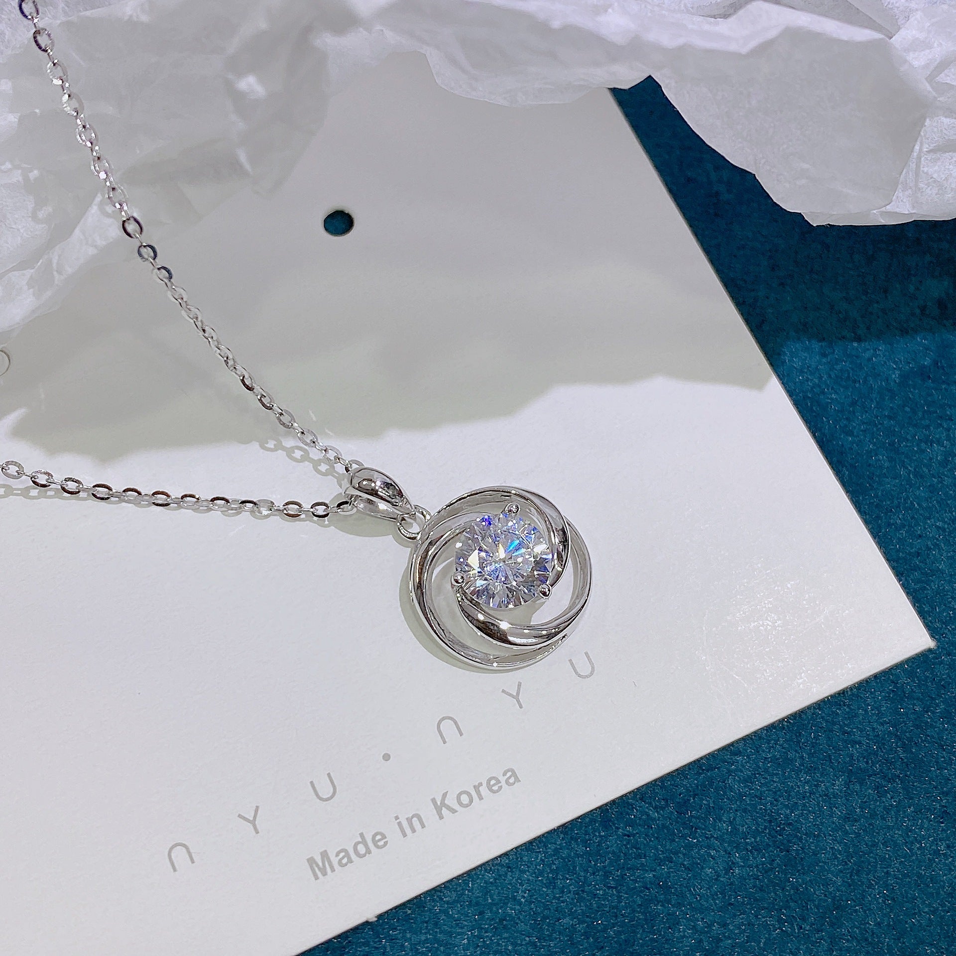 Round Zircon Whirlpool Circle Pendant Silver Necklace for Women