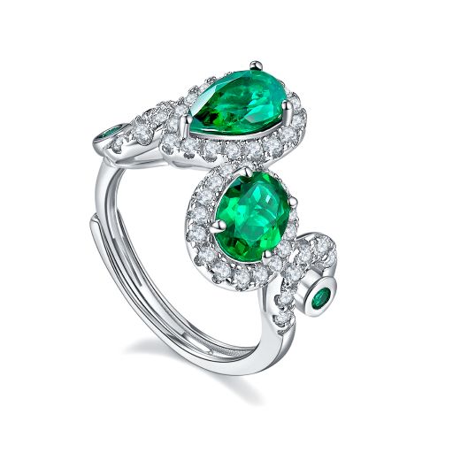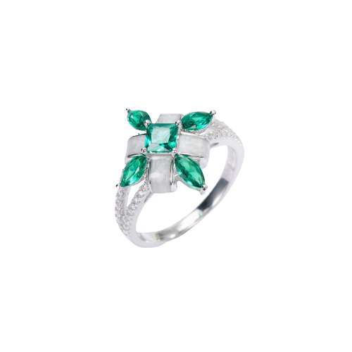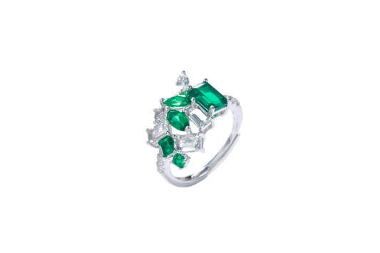Emerald Colour Zircon Enamel Sliver Ring