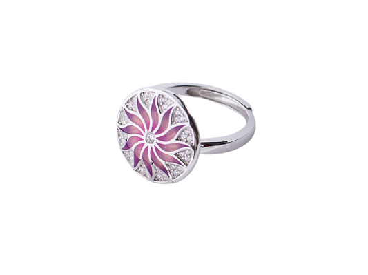 Enamel Pink Datura Stramonium Silver Ring