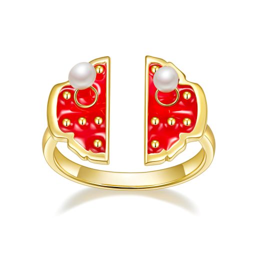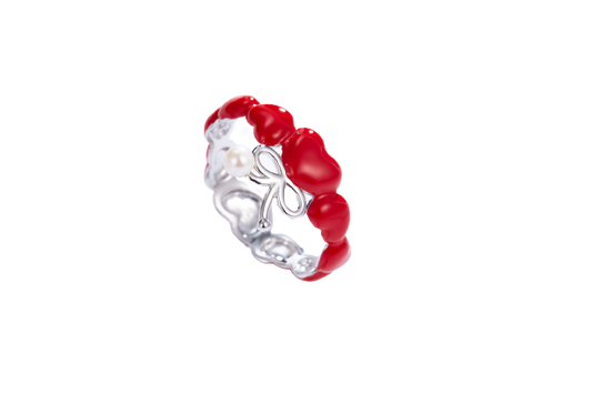 Enamel Red Heart Pearl Ring