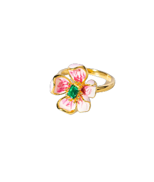 Golden Peach Blossom Enamel Ring for Women