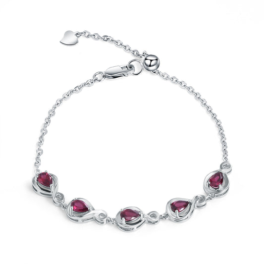 Planderful Gala Fireworks – Cross-border New Light Luxury Retro Pigeon Blood Red Lab Grown Ruby Bracelet S925 Sterling Silver Rose Colored Treasure Jewelry Women