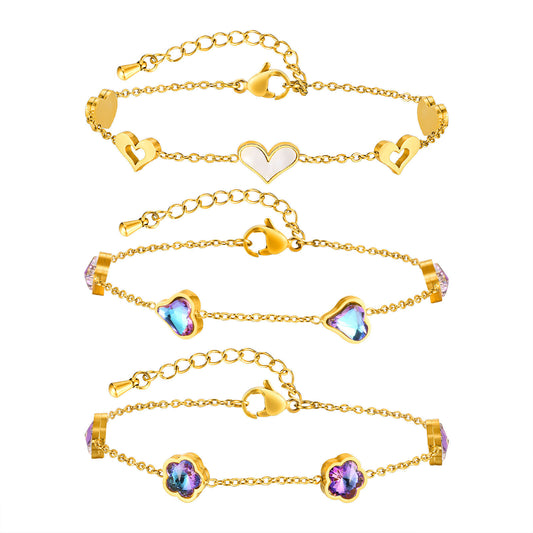 Stainless Steel Water Drop Zircon Bracelet Gold Female